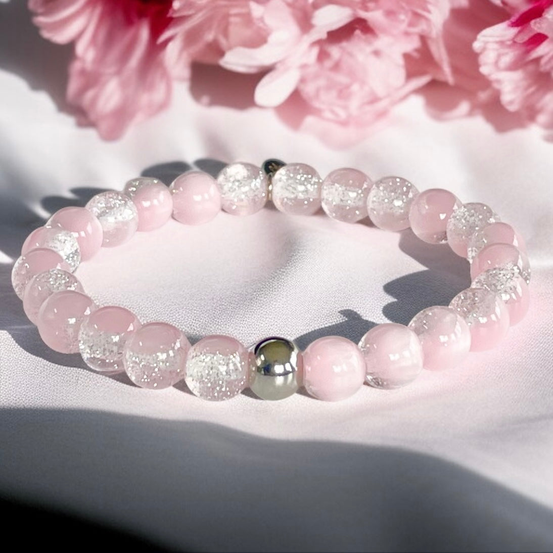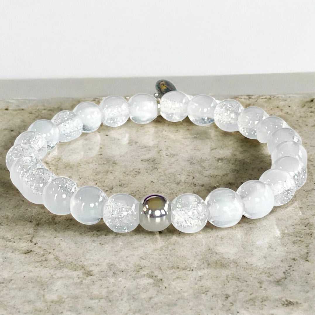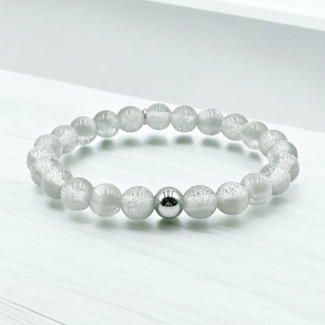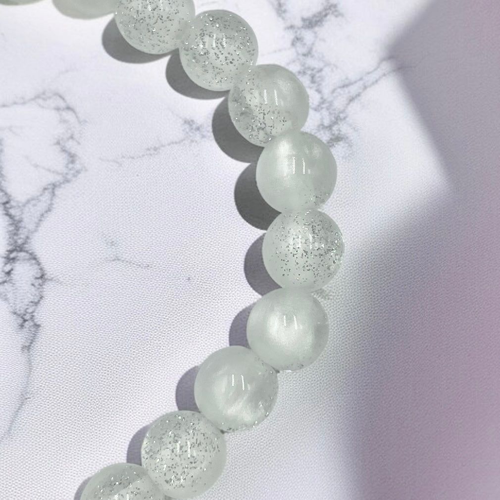 Experience subtle brilliance with our Glitter Collection Bracelets. Each bead contains sparkling glitter that enhances your daily style effortlessly. Choose from three refined designs: the Classic Glitter Bracelet, the Micro Glitter Bracelet featuring finer glitter particles, and the Satin Glitter Bracelet, which combines a satin shimmer with silver glitter accents in every bead.