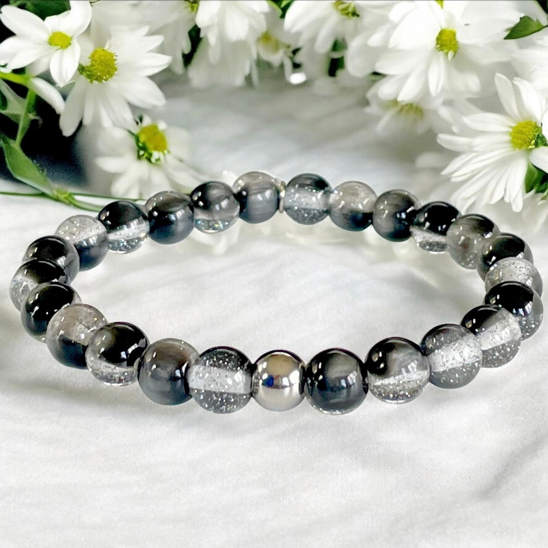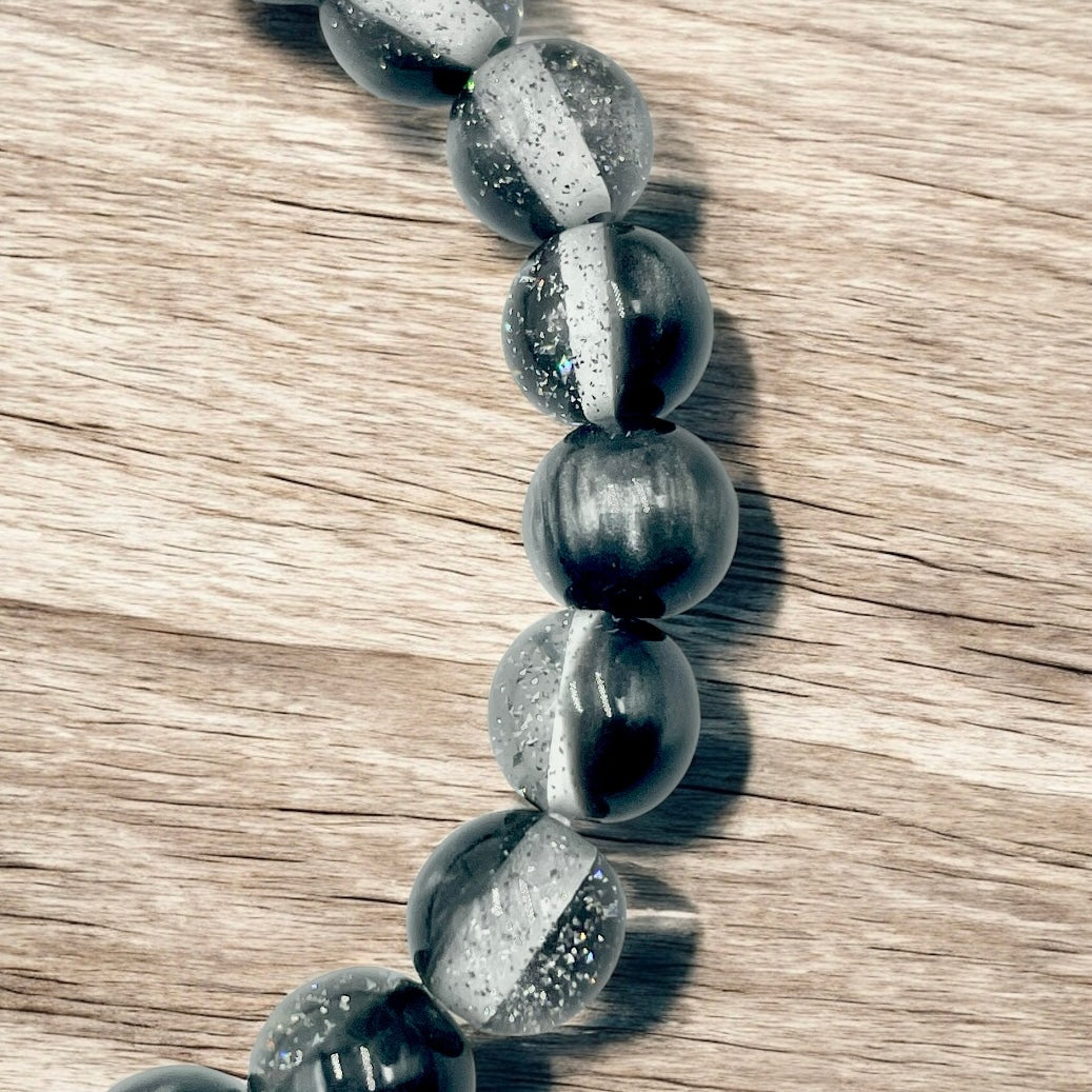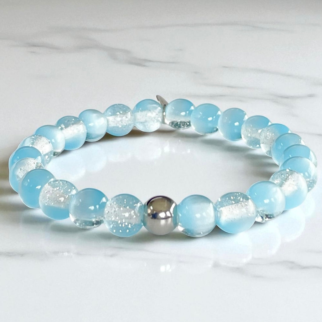 Experience subtle brilliance with our Glitter Collection Bracelets. Each bead contains sparkling glitter that enhances your daily style effortlessly. Choose from three refined designs: the Classic Glitter Bracelet, the Micro Glitter Bracelet featuring finer glitter particles, and the Satin Glitter Bracelet, which combines a satin shimmer with silver glitter accents in every bead.