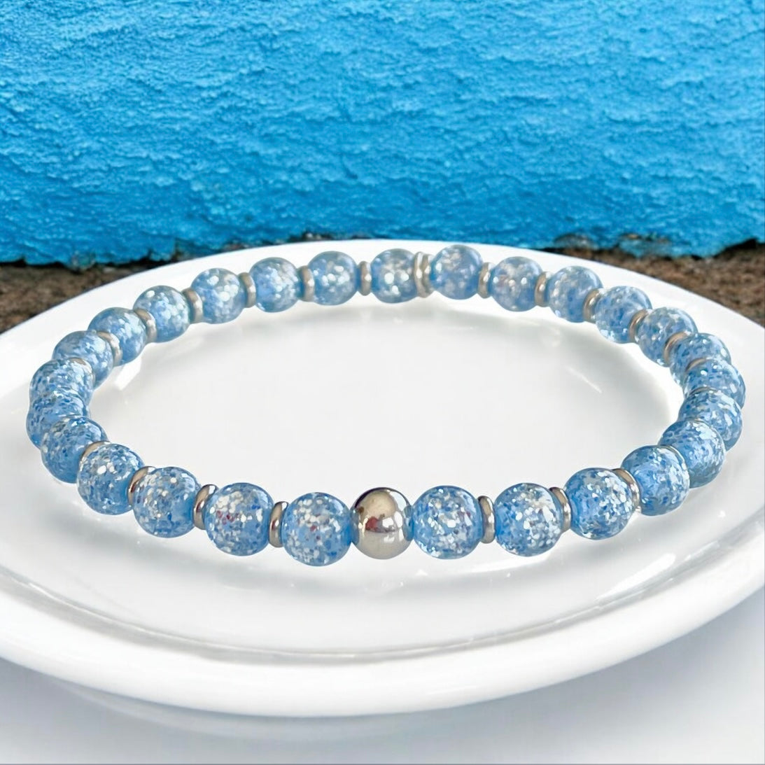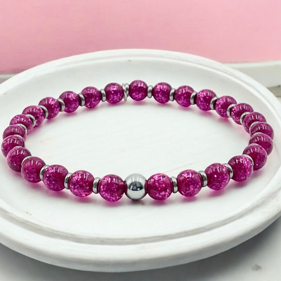 Experience subtle brilliance with our Glitter Collection Bracelets. Each bead contains sparkling glitter that enhances your daily style effortlessly. One of three refined designs: the Classic Glitter Bracelet, the Satin Glitter Bracelet, which combines a satin shimmer with silver glitter accents in every bead. The Mini Bracelet features a more petite size, tiny but mighty in the sparkle department!!!
