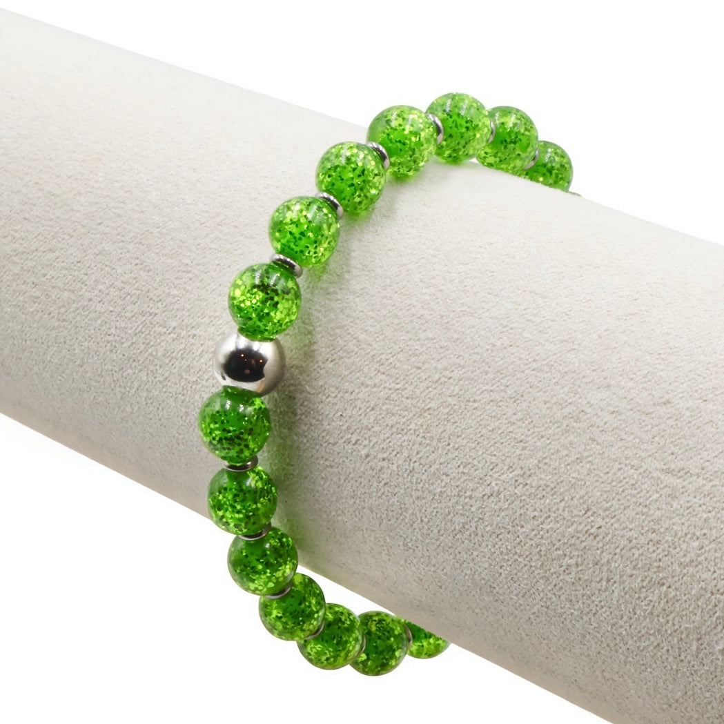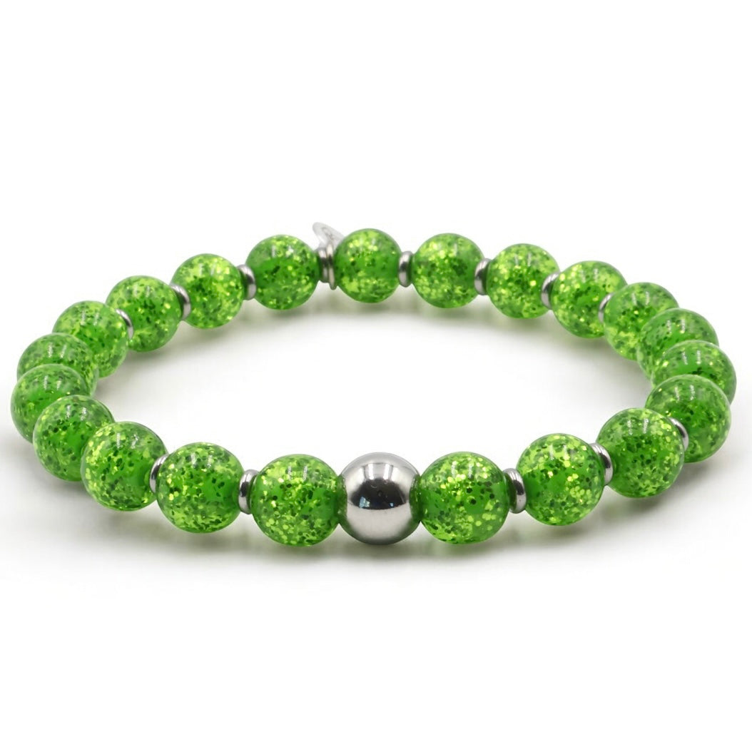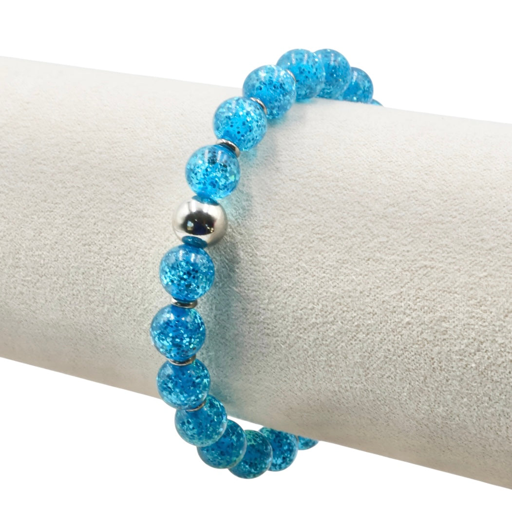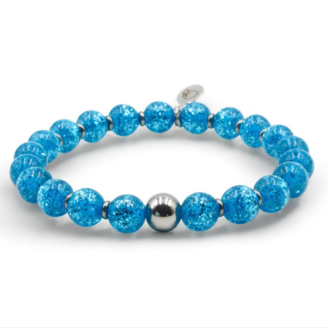 Experience subtle brilliance with our Glitter Collection Bracelets. Each bead contains sparkling glitter that enhances your daily style effortlessly. Choose from three refined designs: the Classic Glitter Bracelet, the Micro Glitter Bracelet featuring finer glitter particles, and the Satin Glitter Bracelet, which combines a satin shimmer with silver glitter accents in every bead.