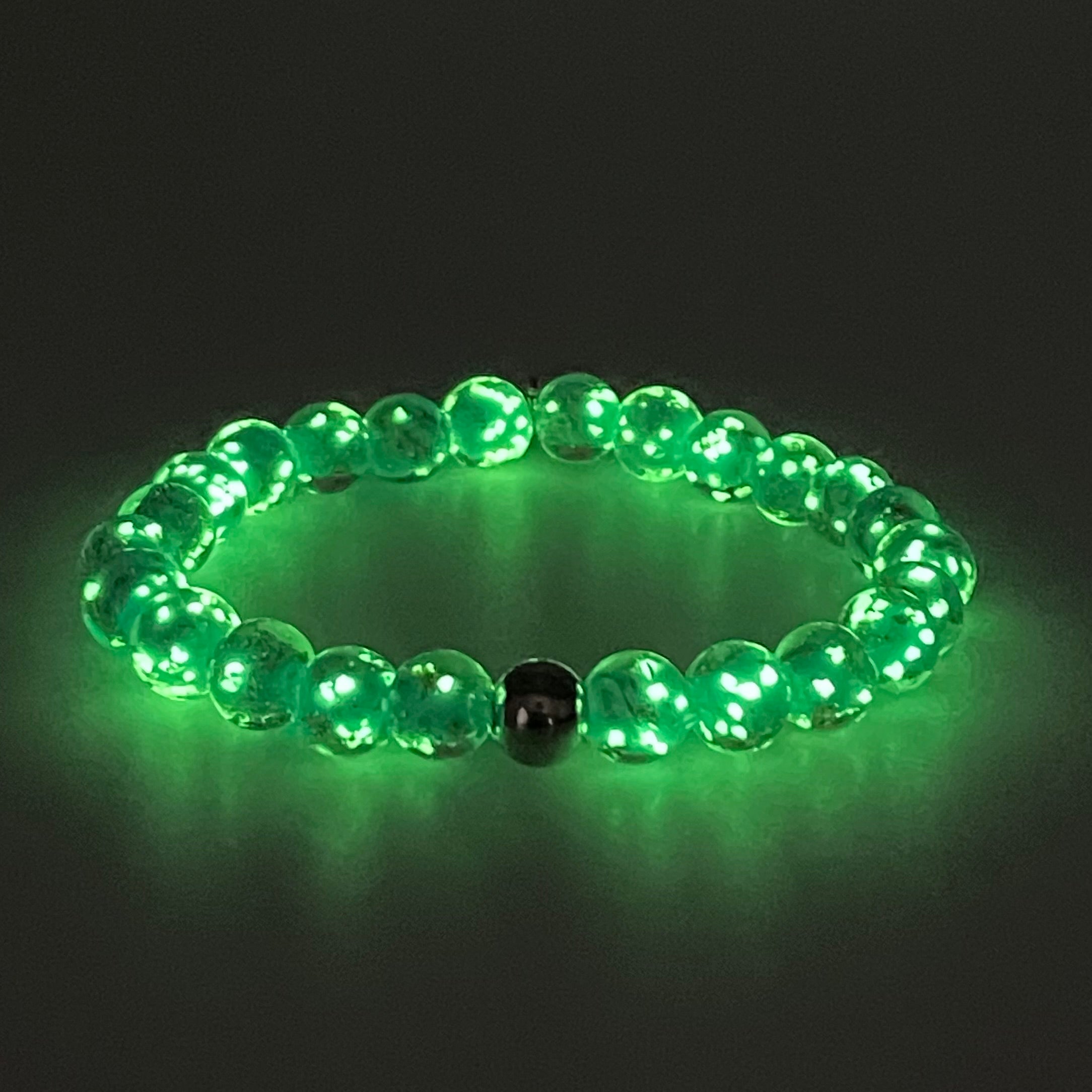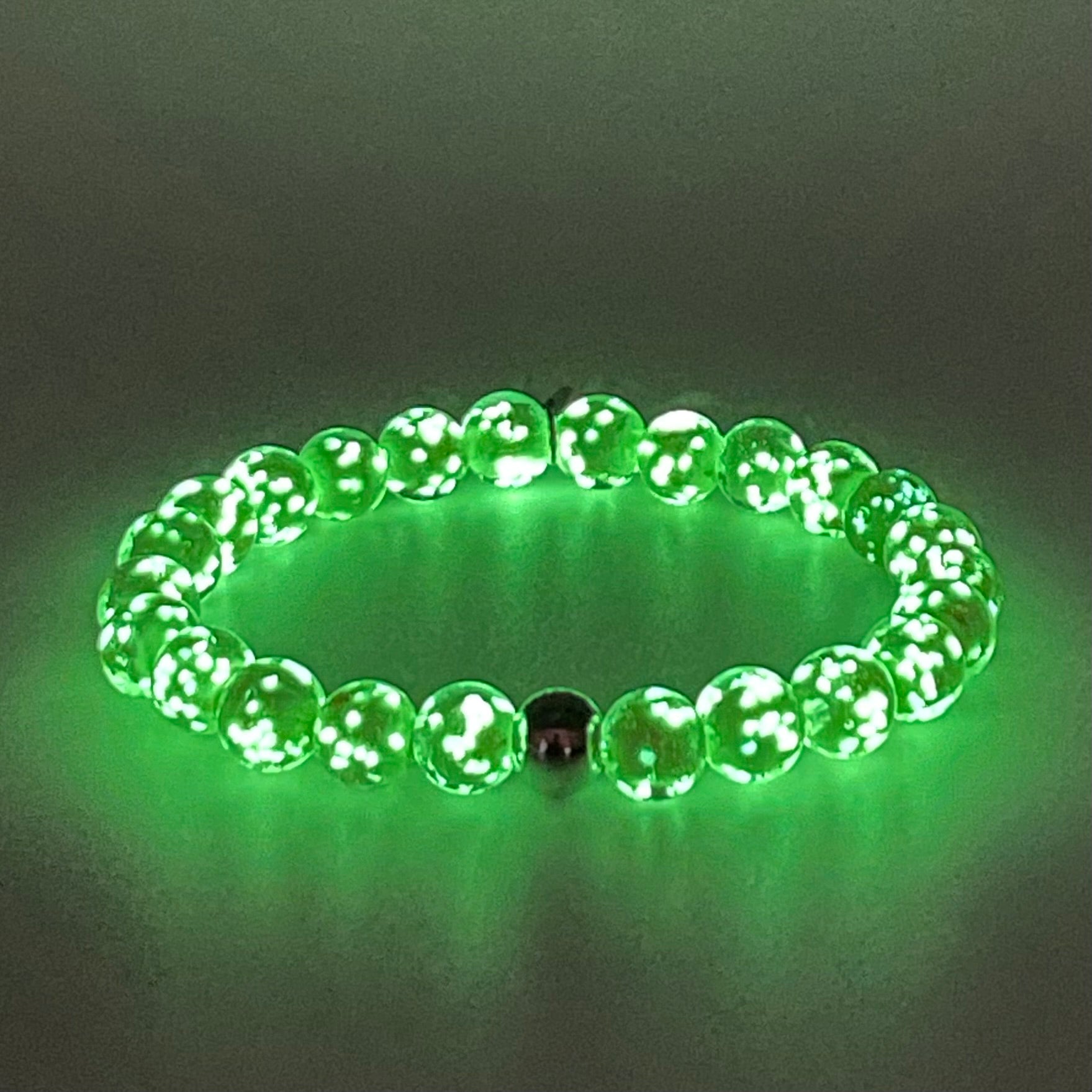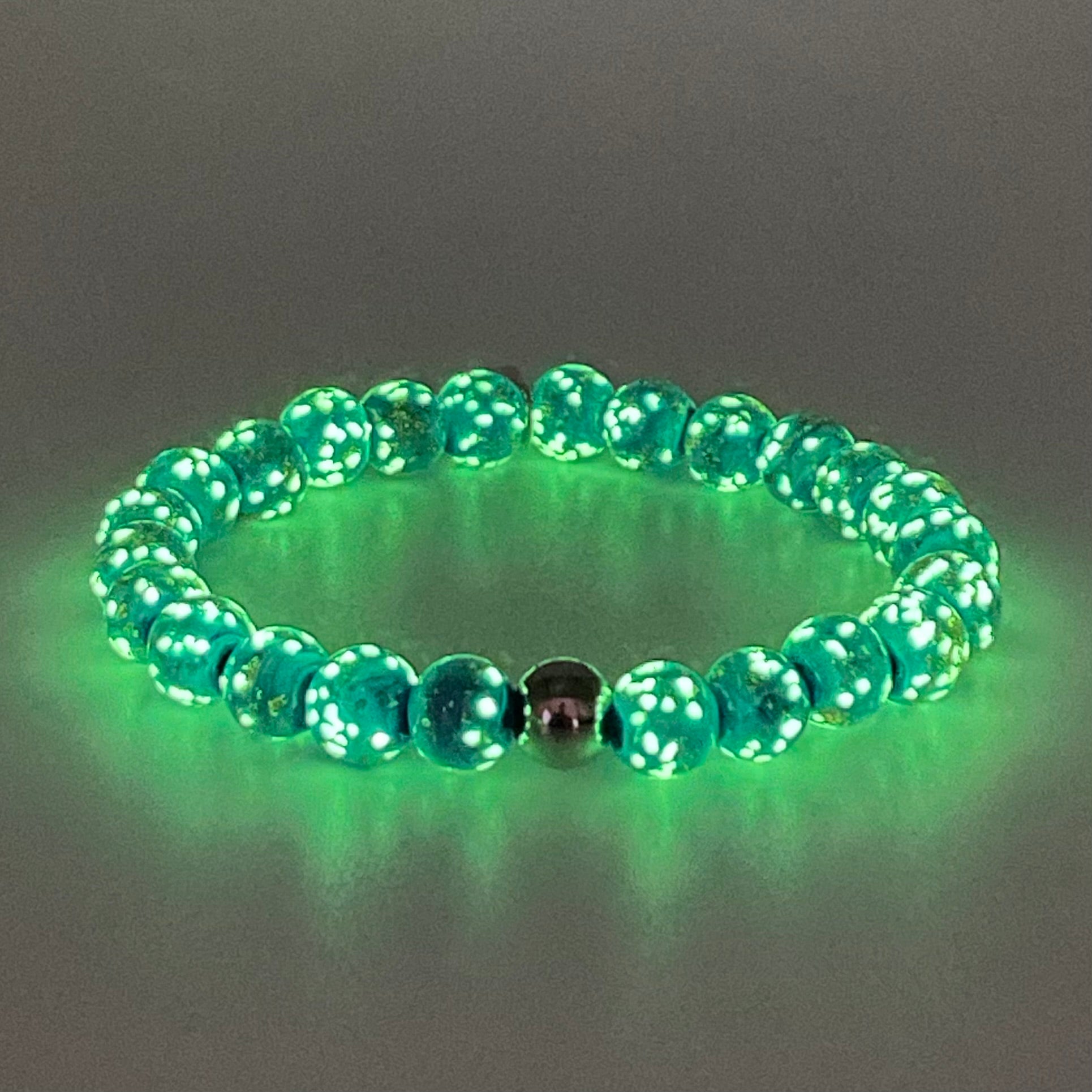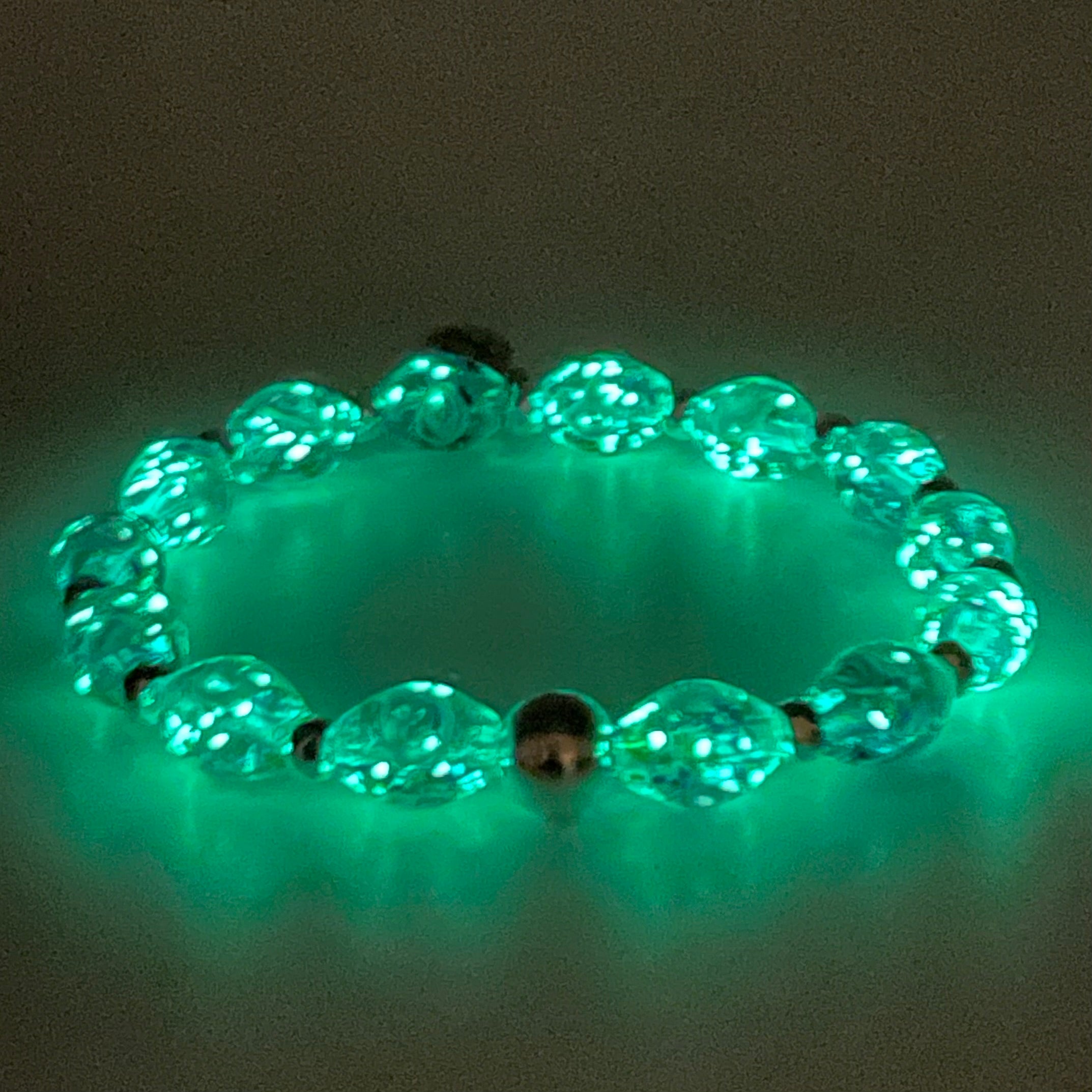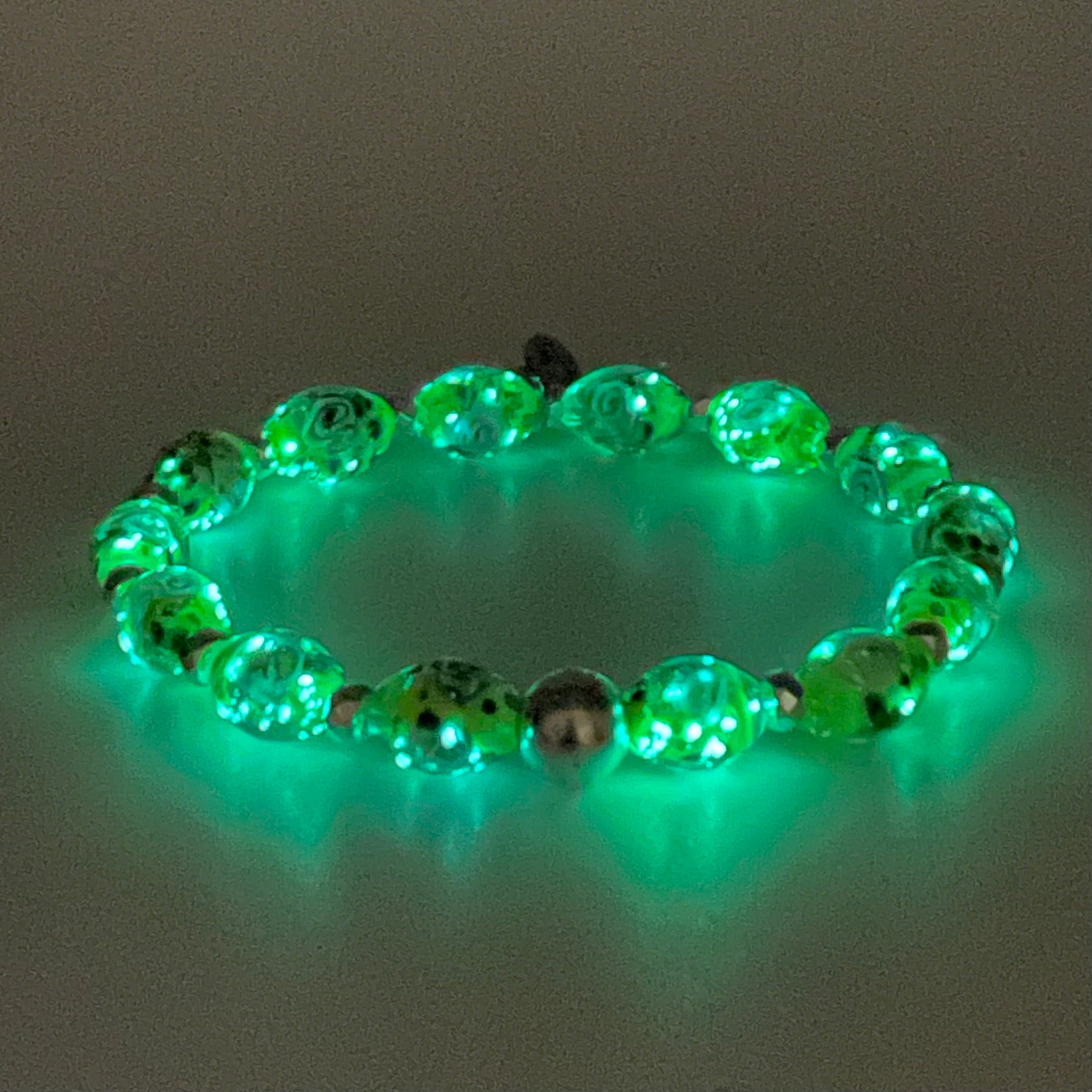 Experience the captivating brilliance of the Luminous Collection's Glow-In-The-Dark Bracelets. Each bracelet is meticulously crafted from authentic Murano Glass beads, enhanced with luminous flecks that emit a subtle, enduring glow in darkness. This expert craftsmanship not only elevates your style but also offers a unique accessory that shines with sophistication after sunset. Perfect for adding a touch of elegance and intrigue to any evening ensemble.