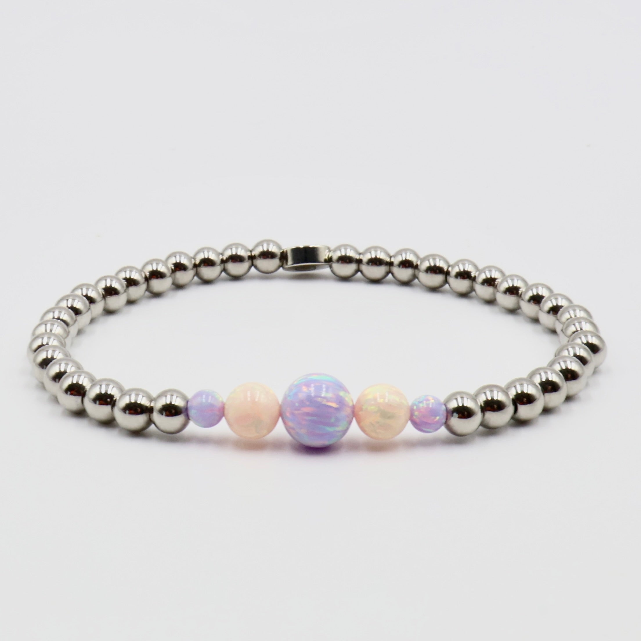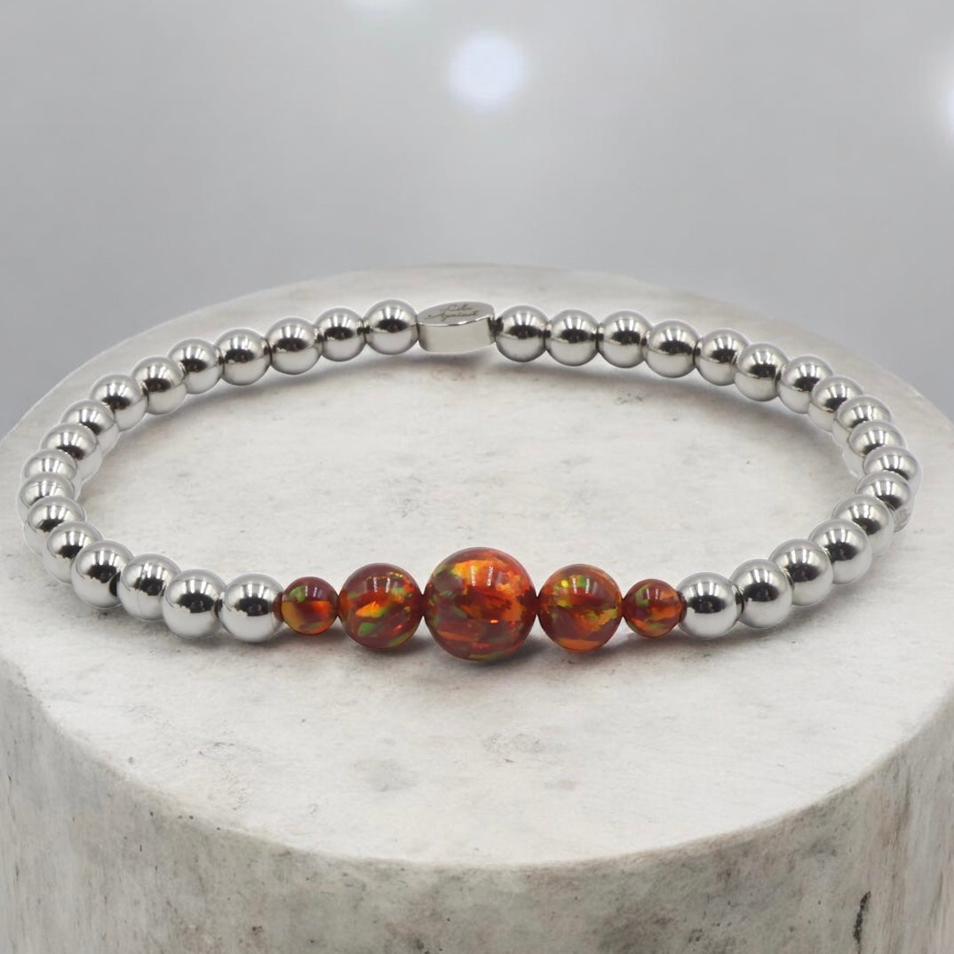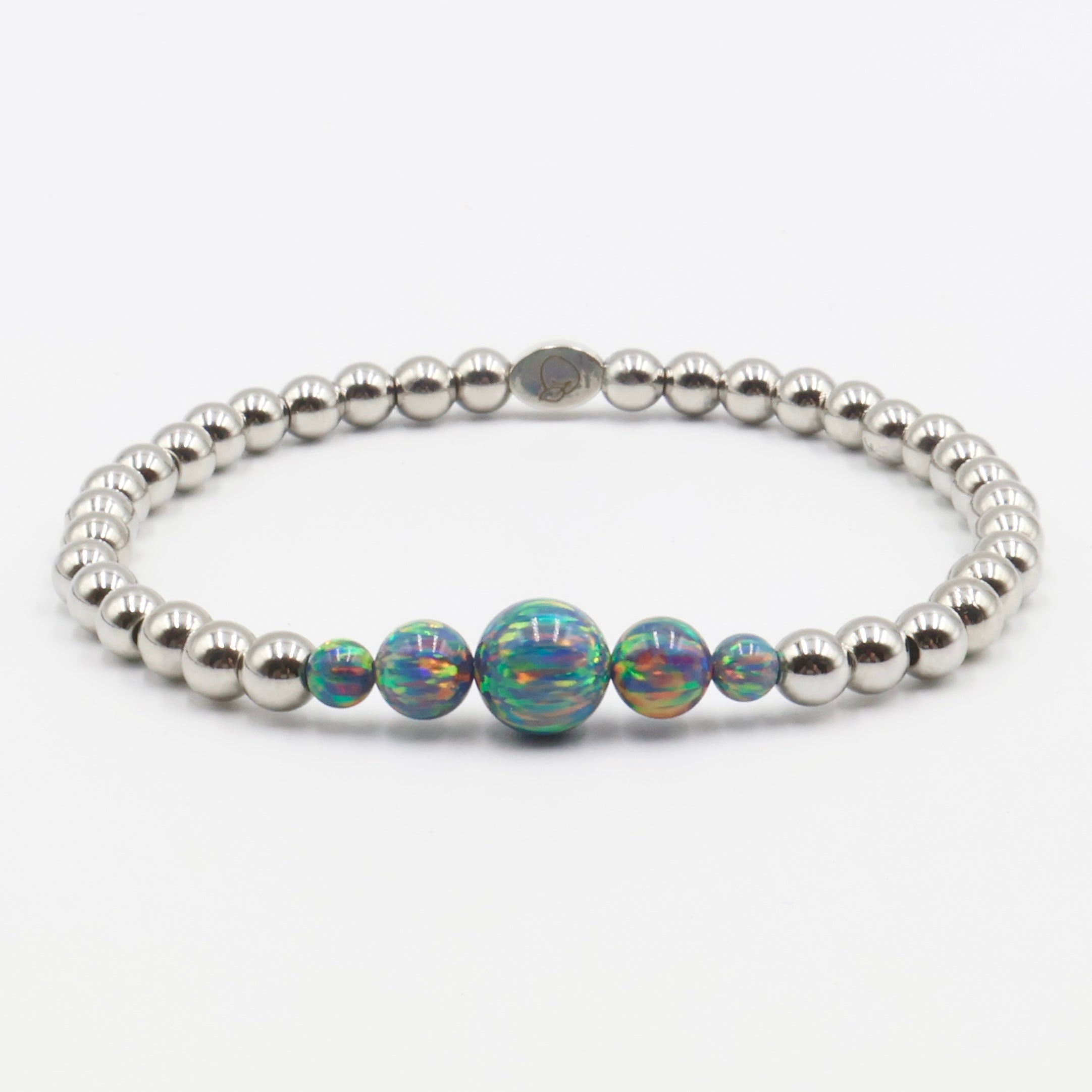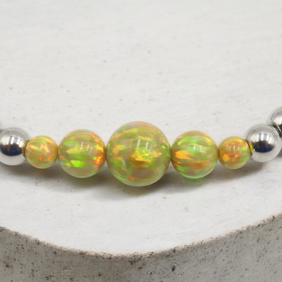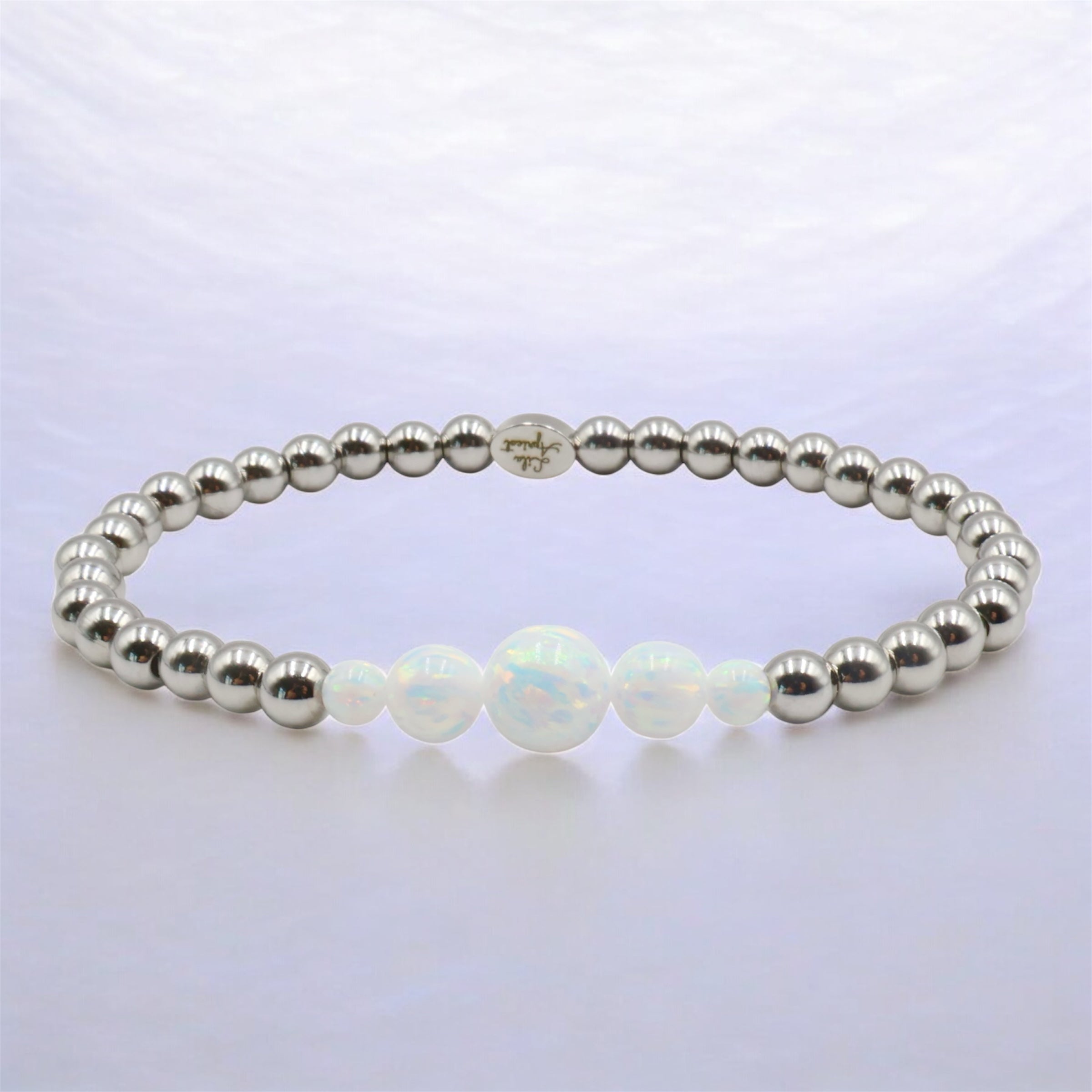 The Opal Cascade Bracelet is Lila Apricot’s most sought-after style. These bracelets feature a design centered around a larger opal that seamlessly transitions to smaller opals, creating an elegant flow. This arrangement highlights the unique beauty and vibrant colors of each opal, offering a sophisticated and expertly crafted piece ideal for discerning bracelet lovers.