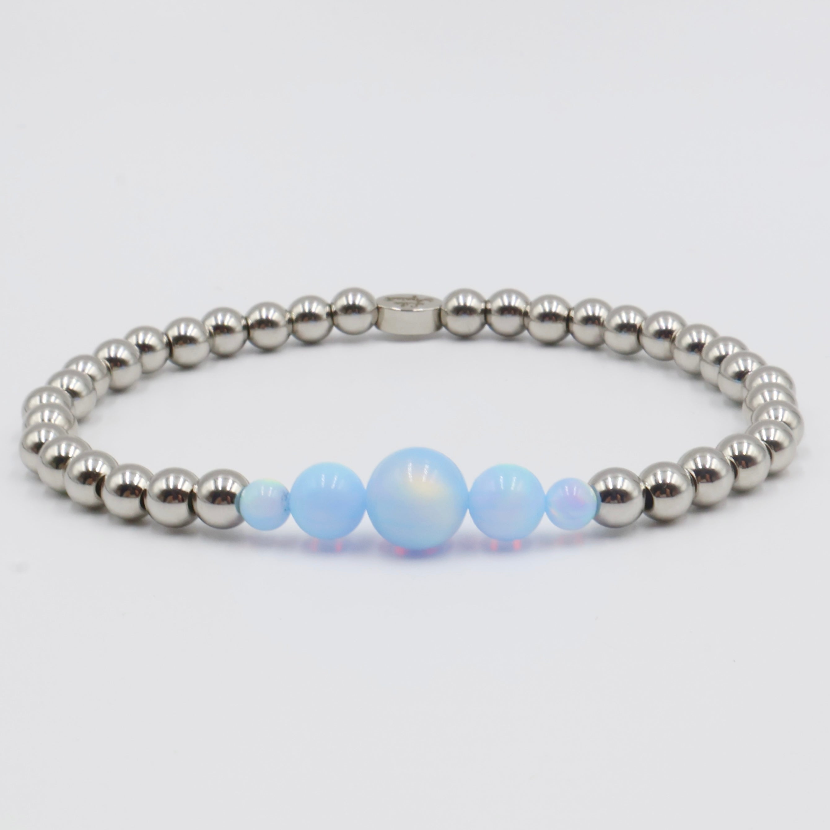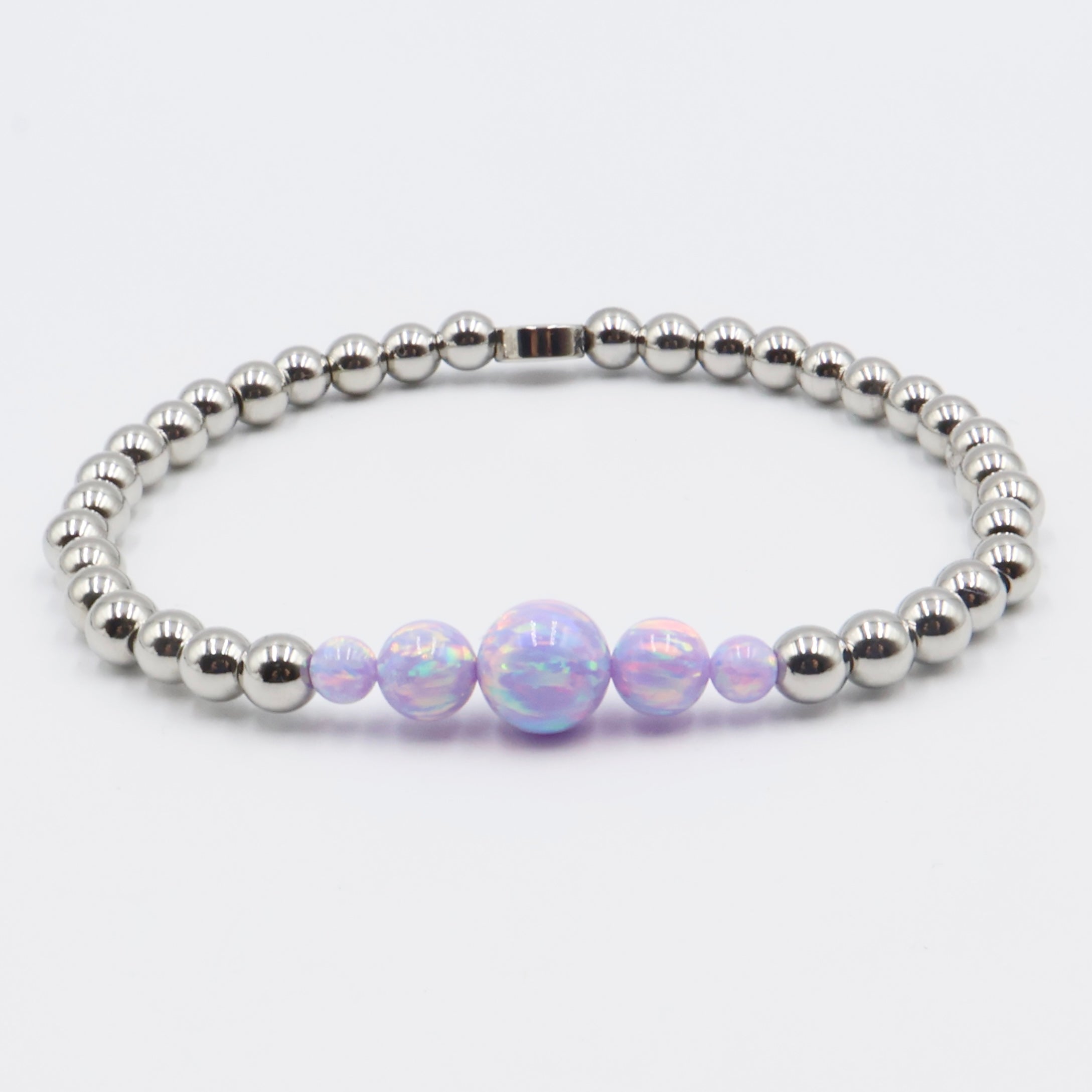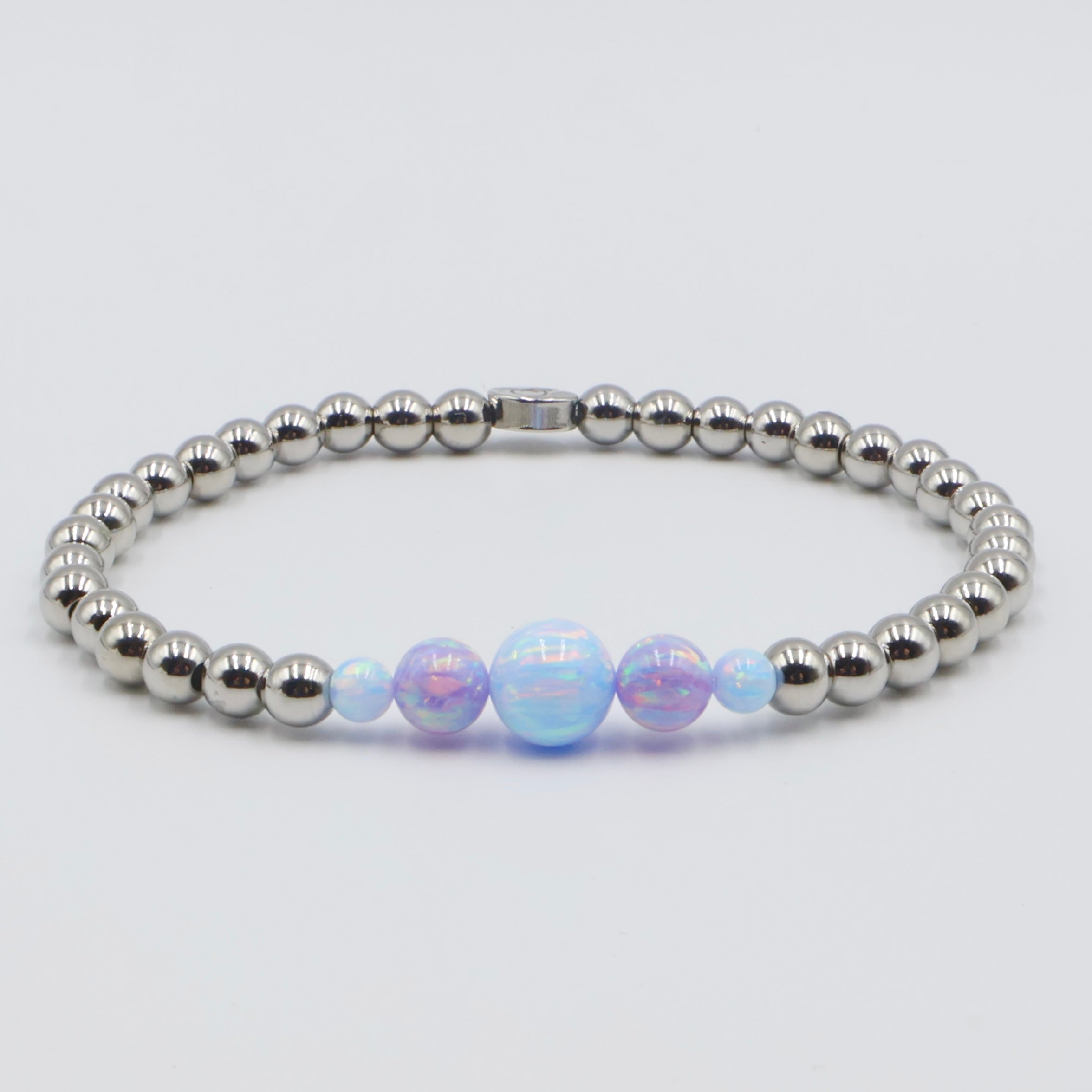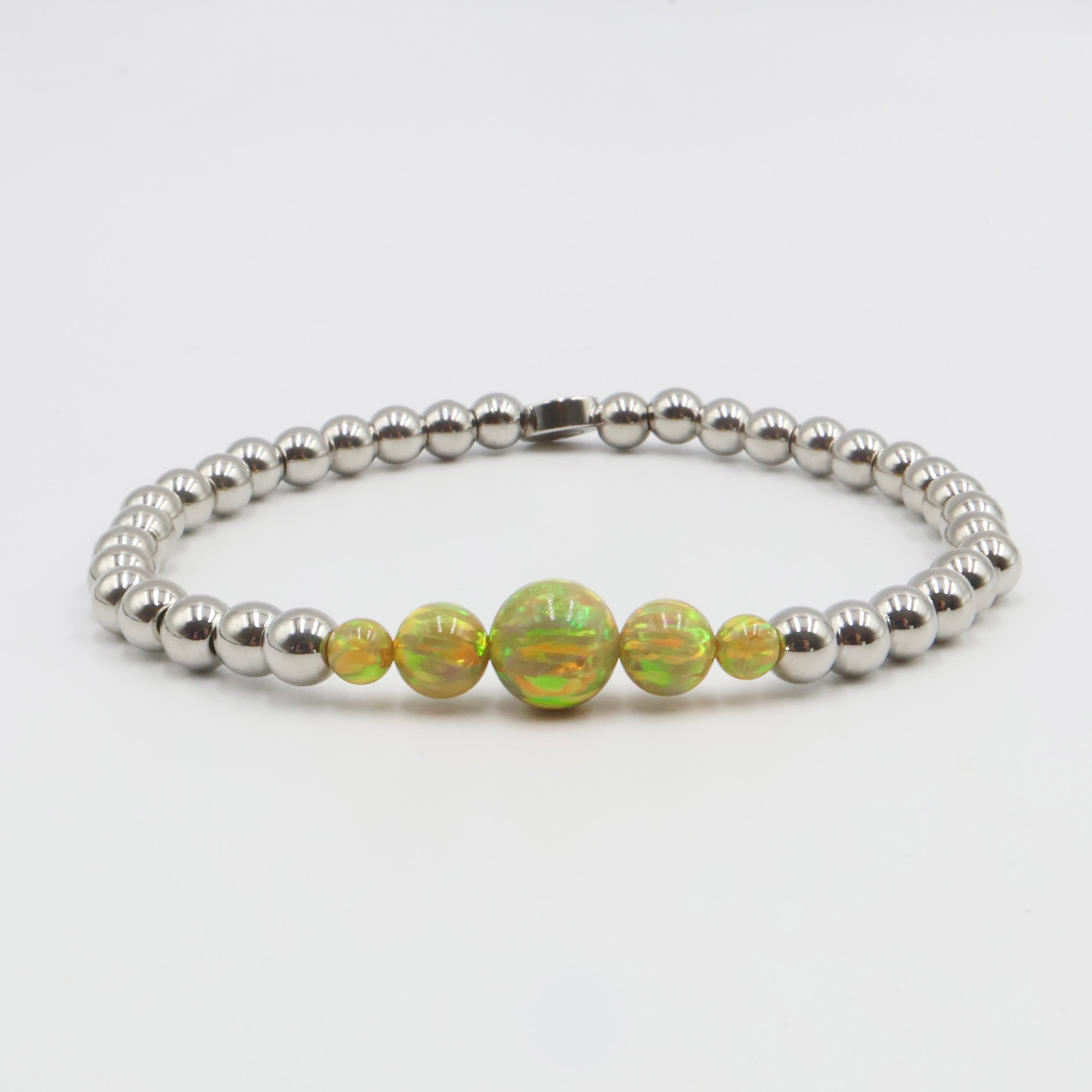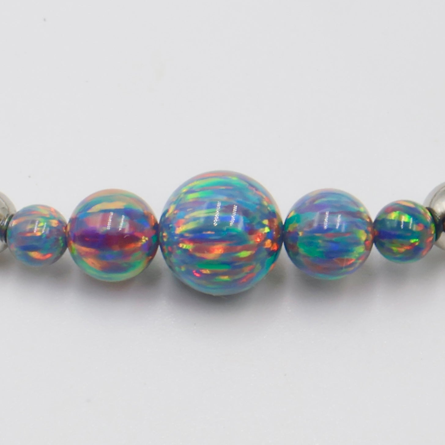 The Opal Cascade Bracelet is Lila Apricot’s most sought-after style. These bracelets feature a design centered around a larger opal that seamlessly transitions to smaller opals, creating an elegant flow. This arrangement highlights the unique beauty and vibrant colors of each opal, offering a sophisticated and expertly crafted piece ideal for discerning bracelet lovers.